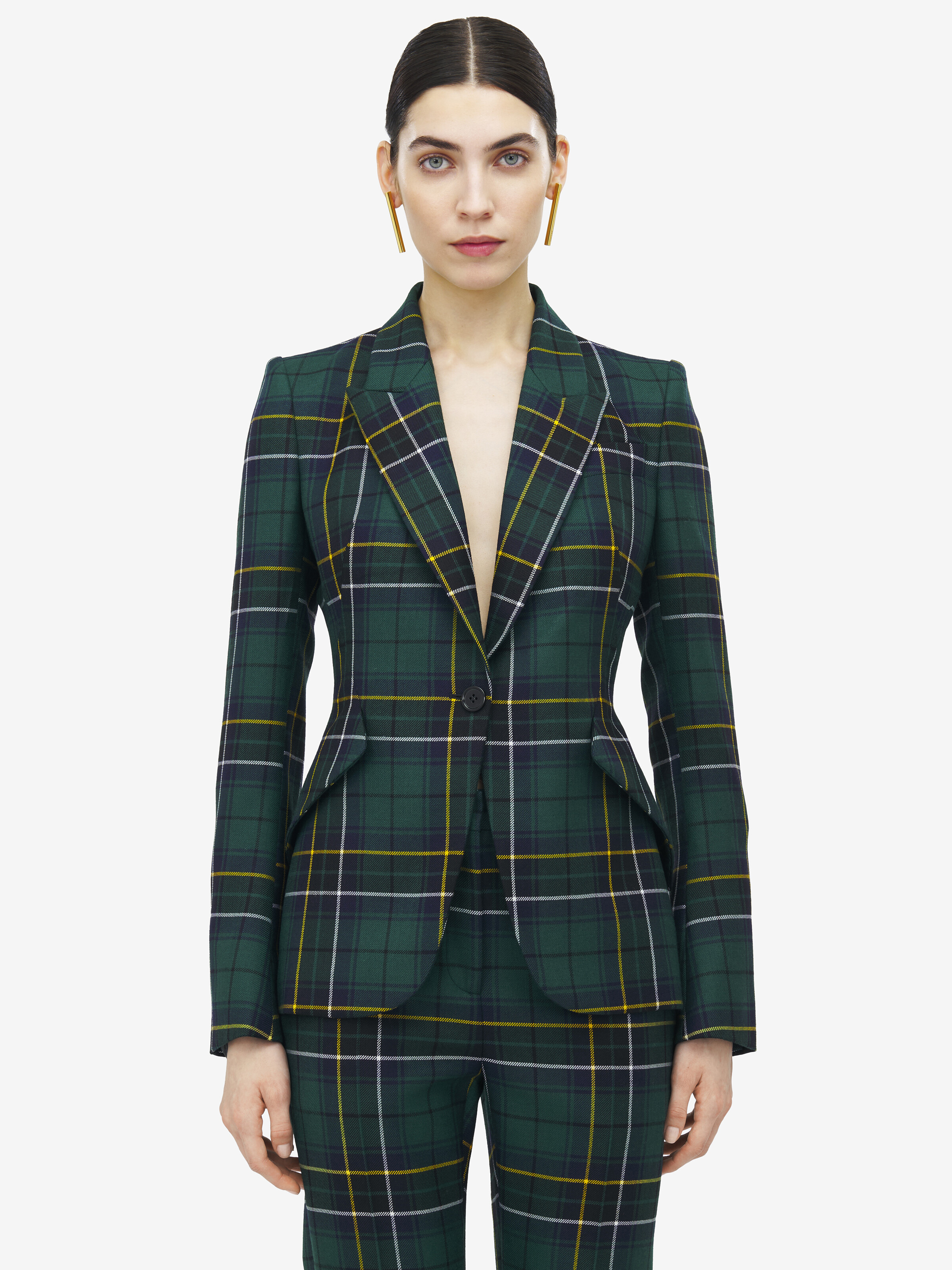 Wool Tartan Peak Shoulder Jacket